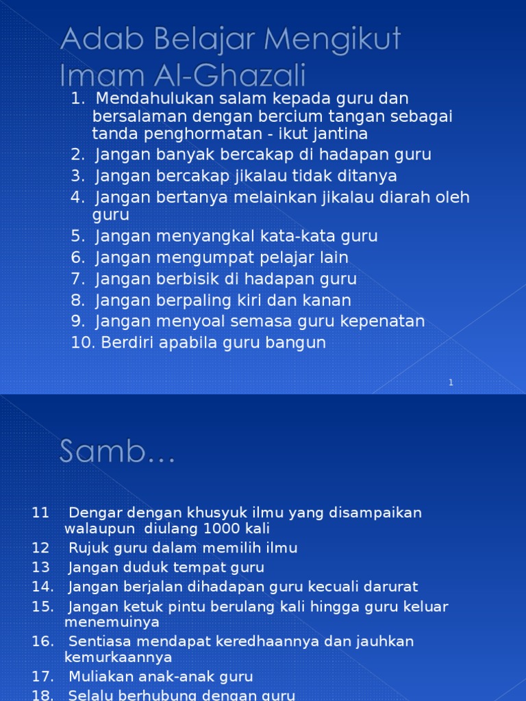 Adab Belajar Dalam Islam / Sabar saat menemui kesulitan dan kemudahan.. Bahkan imam malik rahimahullah pernah berkata pada orang quraisy, تعلم الأدب قبل أن تتعلم العلم. Dalam hal ini belajar mengaji atau membaca al quran. Apabila seseorang terhambat untuk memahami suatu materi pelajaran (agama islam maupun sains), maka bertanya kepada orang yang lebih mengetahui hal tersebut bukanlah sebuah perbuatan yang memalukan. Belajar tauhid, cara sholat, cara puasa, cara haji, tafsir quran. Waktu yang tidak kurang untuk belajar.